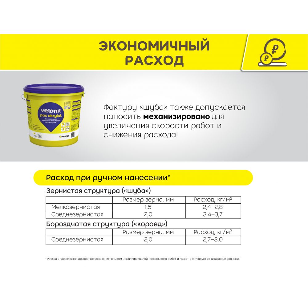 Работы рекомендуется производить материалом из одной партии на одной плоскости (от угла до угла). При невозможности произвести работы материалом из одной партии стыковку материалов из разных партий производить в малозаметных местах (по рустам, членениям фасада, декоративным элементам