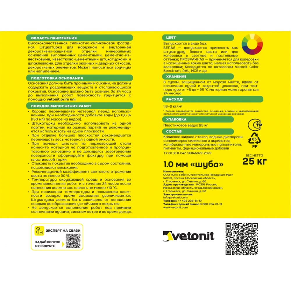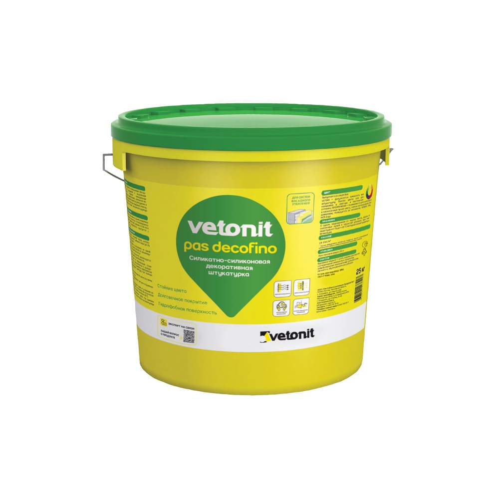 Силикатно-силиконовая декоративная штукатурка с размером зерна 1 мм. Для создания декоративно-защитного финишного слоя в системах Штукатурного фасада (СФТК) Vetonit с минеральной ватой (базальтовой и кварцевой), а также пенополистиролом. Также отлично подходит для нанесения на декоративные элементы как внутри здания, так и на фасаде. Обладает эффектом самоочищения и высокой паропроницаемостью. Устойчива к воздействию щелочей и выхлопных газов. Не требует последующей окраски, так как колеруется в массе в соответствии в соответствии с цветовой палитрой Vetonit Color Spectrum, RAL, NCS и другими системами.