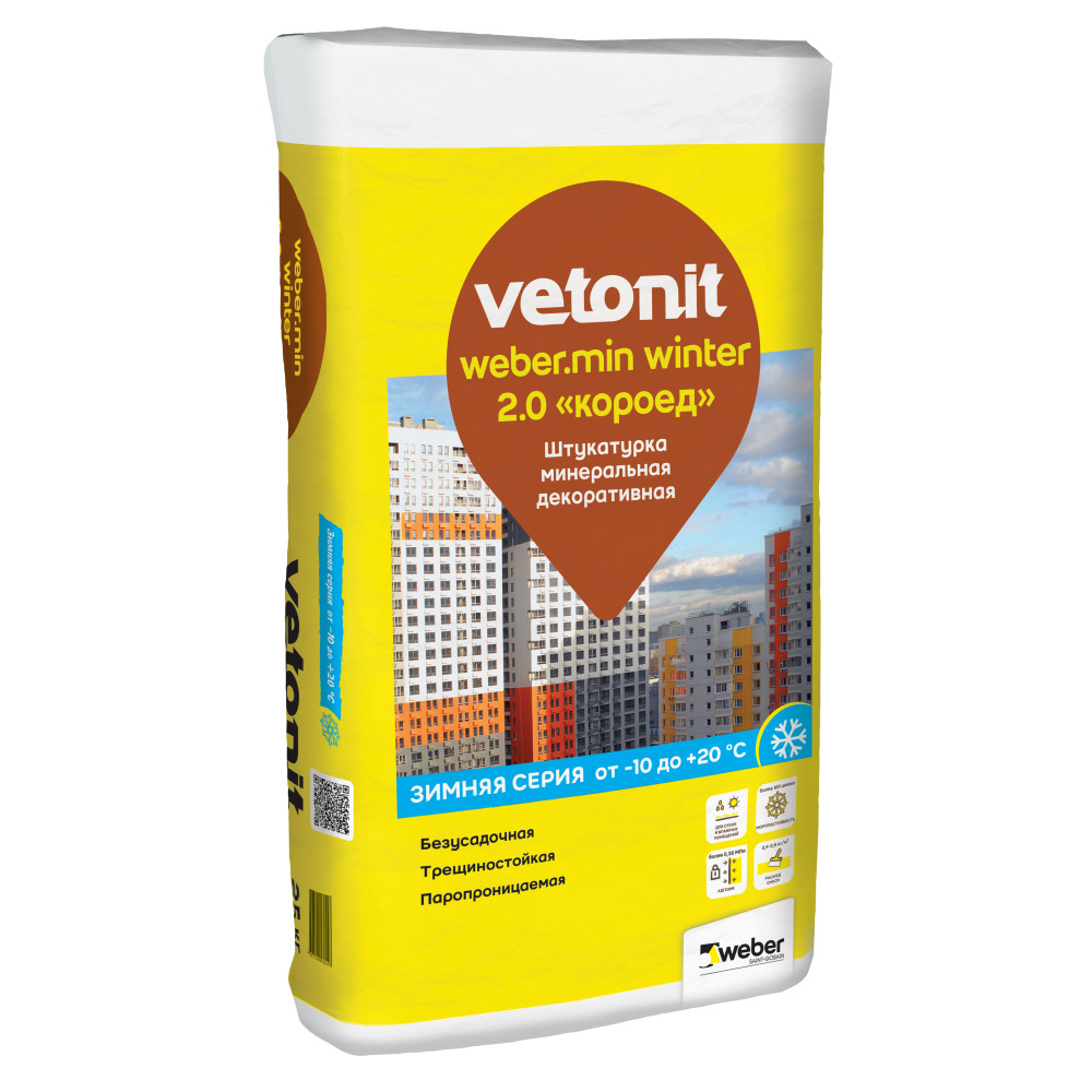 Высококачественная декоративная минеральная штукатурка для работ при отрицательной температуре до -10 °С. Подходит для декоративной отделки стен внутри и снаружи помещений, с последующей окраской вододисперсионными красками. Является негорючим и безопасным материалом. Обладает хорошей паропроницаемостью и морозостойкостью.