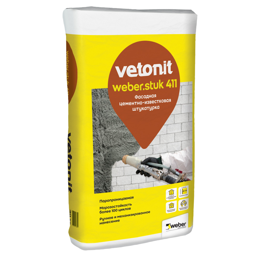 Цементно-известковая штукатурка с микроволокном для внутренних и наружных работ. Для оштукатуривания поверхности слоем толщиной от 5 до 30 мм (50 - локальные неровности). В качестве базового и выравнивающего слоя в системе фасадного утепления на гибких связях c толстым наружным штукатурным слоем. Обладает высокой паропроницаемостью. Подходит для ручного и механизированного нанесения.