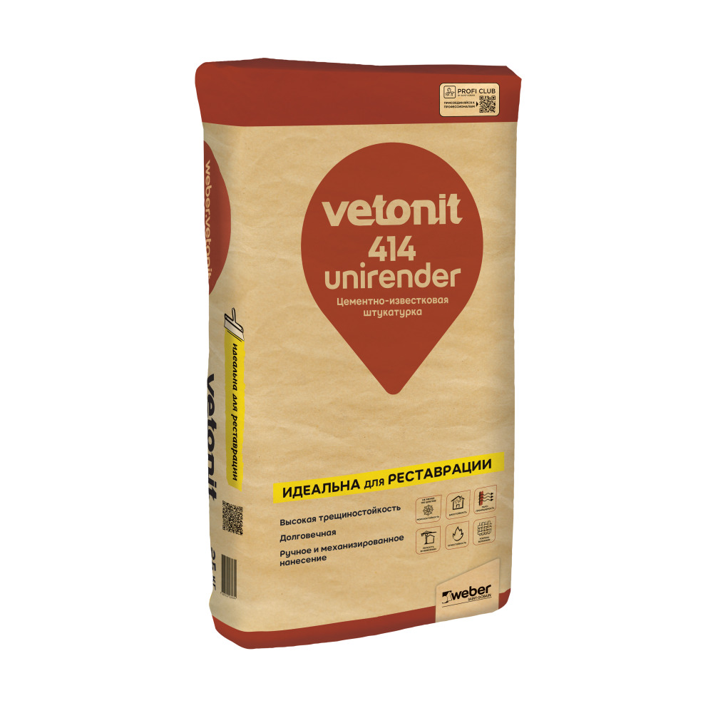 Штукатурка WEBER.VETONIT 414 служит для оштукатуривания поверхности слоем толщиной от 5 до 30 мм (50 локальные неровности). В качестве базового и выравнивающего слоя в системе фасадного утепления на гибких связях c толстым наружным штукатурным слоем.