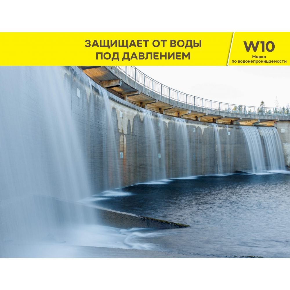 - подходит для внутренних и наружных работ, резервуаров с питьевой водой, бассейнов, фундаментов и подземных частей зданий, террас, балконов, ванных комнат.