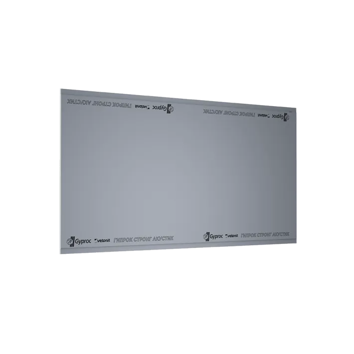 ГСП Gyproc Стронг Акустик 15 мм, 2500×1200 ПрК — повышенная толщина и наличие армированных волокон позволяют гипсовой плите Gyproc Стронг Акустик выдерживать нагрузки, а вам — повесить большой телевизор или полку даже на однослойную конструкцию — в любое место и без применения закладных деталей. А благодаря высокой плотности сердечника гипсовая плита приобретает особые звукоизоляционные качества.