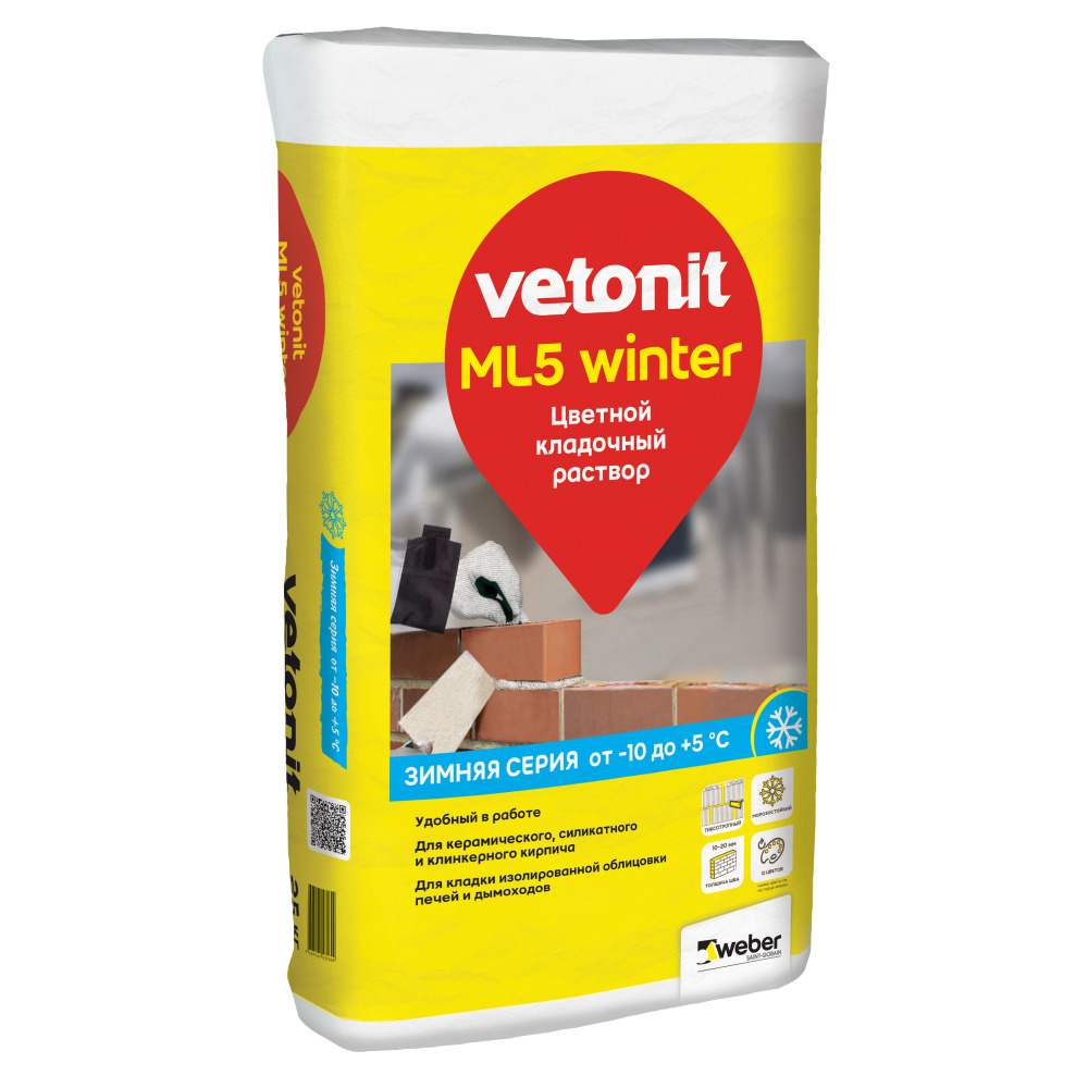 Цветной цементный раствор для кладки керамического, силикатного и клинкерного кирпича и цветового оформления швов в зимний период. Для выполнения кладки керамического и силикатного кирпича с водопоглощением до 15%, а также клинкерного кирпича с водопоглощением 4–6% при температуре окружающего воздуха до -10 С. Подходит для кладки наружных и внутренних стен, дымоходов над кровлей, а также изолированной облицовки печных конструкций.
