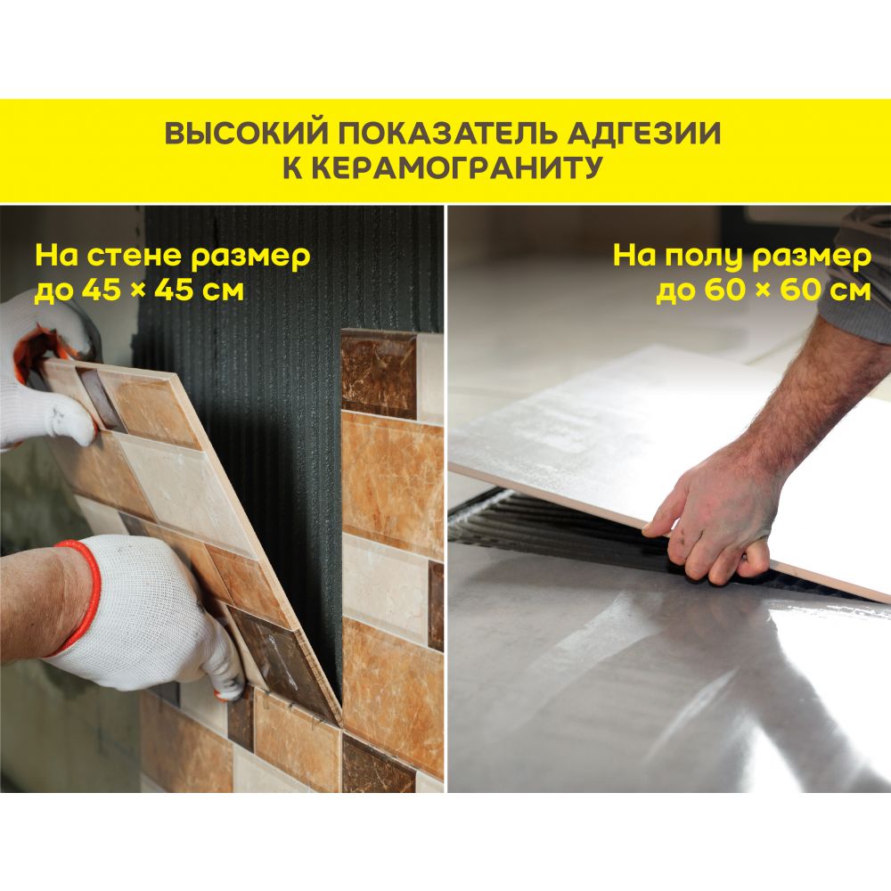 - высокий показатель адгезии к слабо впитывающим облицовочным материалам;