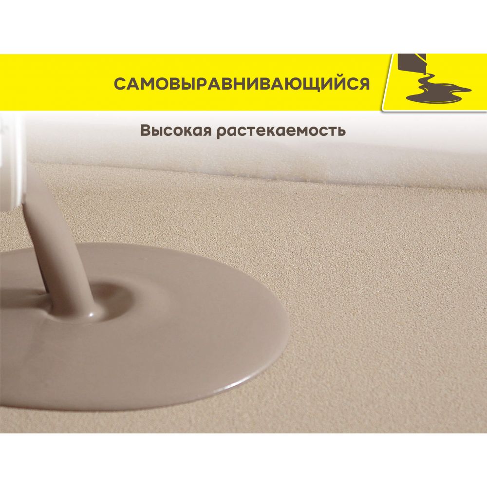Применим для системы «теплый пол» с электроподогревом. В зависимости от типа напольного покрытия и толщины слоя его укладка возможна от 1 дня. Ходить по полу разрешается уже через 4 часа. Продукт обладает оптимальным расходом, высокой растекамостью и удобен в работе.