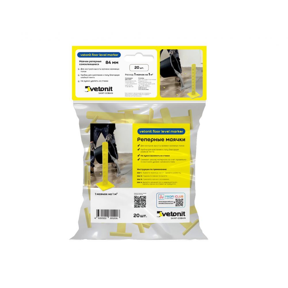 Реперные маячки vetonit floor level marker предназначены для контроля высоты заливки наливных полов. На маячки нанесена миллиметровая шкала для высокой точности заливки. Маячки удобно и легко крепить к полу благодаря клейкому основанию (по принципу клейкой ленты).